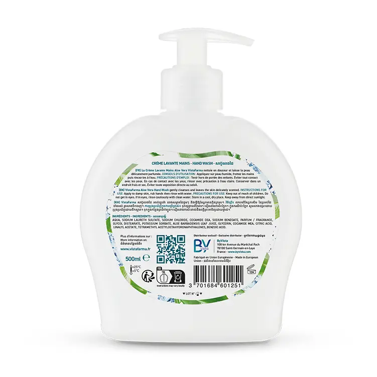 VistaFarma Aloe Vera Hand Wash gently cleanses and leaves the skin delicately scented.