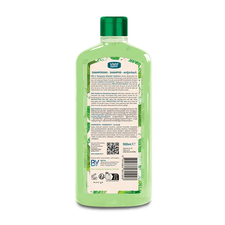 VistaFarma Detoxifying Shampoo effectively cleanses hair and refreshes the scalp. Formulated with nettle extract, known for its purifying action.