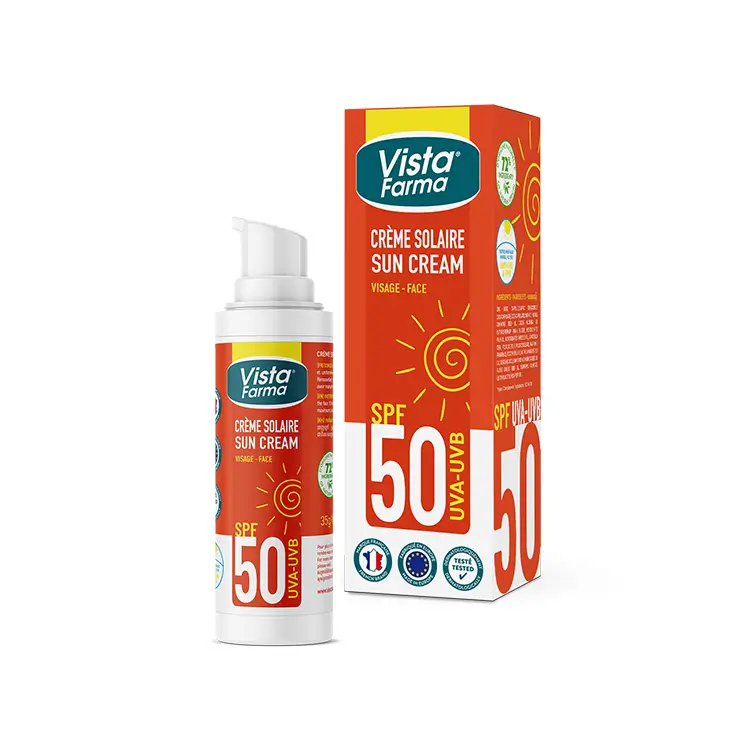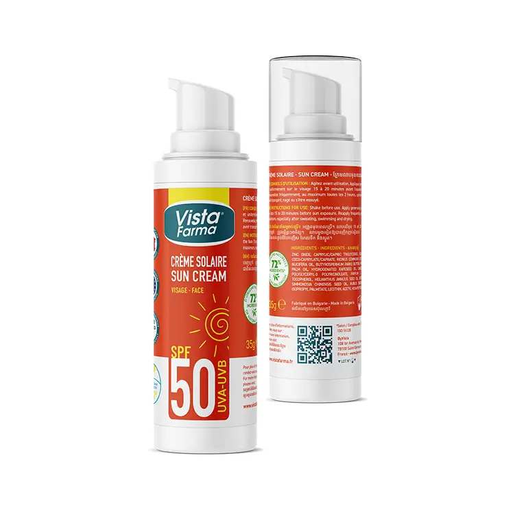 VistFarma Face Sun Cream SPF 50 protects the skin of the face, offering high protection against UVA and UVB rays (100% mineral filters). It is enriched with coconut oil, jojoba oil, and vitamin E. Thanks to its ultra-light texture, it is quickly absorbed without leaving any traces and can easily be reapplied at any time of the day.