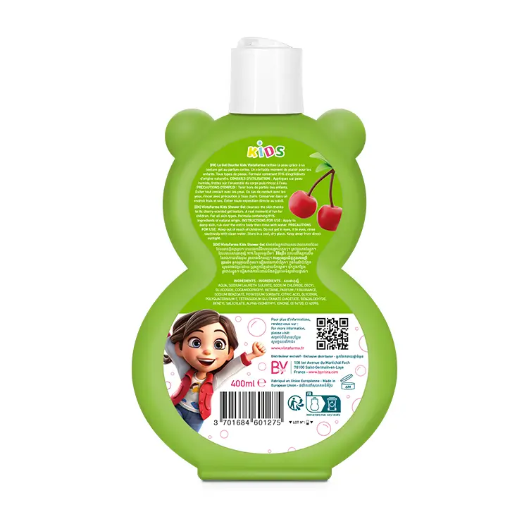 VistaFarma Kids Shower Gel cleanses the skin thanks to its cherry-scented gel texture. A real moment of fun for children.