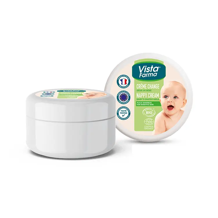 VistaFarma Nappy Cream helps protect baby’s bottom from irritations while moisturizing it. Its formula, which combines zinc oxide with sunflower oil and carnauba wax provides a protective barrier to baby’s delicate skin and helps skin regeneration in case of diaper rash.