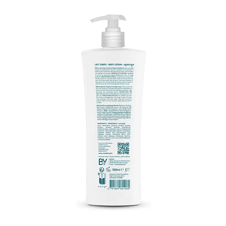 VistaFarma Passion Fruit Body Lotion helps protect the skin from drying out. Enriched with glycerin and panthenol, it leaves the skin moisturized and delicately perfumed. Light, non-sticky and non-greasy texture. Delicate scent.