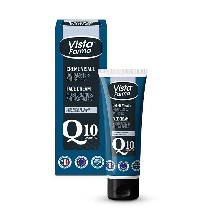 VistaFarma Q10 Face Cream intensely nourishes the skin and helps fight signs of aging. Formulated with coenzyme Q10, it leaves the skin moisturized, supple and comfortable.